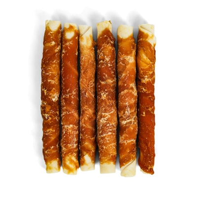 • Gemaakt van runderhuid, omwikkeld met kippenvlees