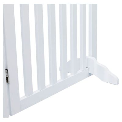 Het Trixie Hondenhek Met Deur Wit 60-160 x 81 cm is een vierdelig hek uit gelakt MDF, op verschillende manieren op te stellen, met voetjes.
